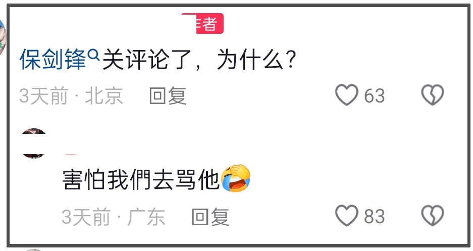 看到保剑锋的反应,不少网友在评论区吐槽他这种没有担当的行为,让他有本事正面回应,不要只顾着自己日子活得滋润,还有网友控诉他买水军控评也遮掩不了争议。