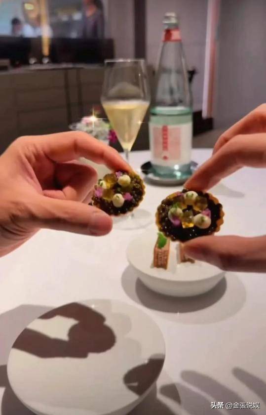 照片里能看到,每一碟菜的分量都特别少,鱼子酱可能就是一小勺,鹅肝也就两三片,另外一碟看起来像是某种海鲜。