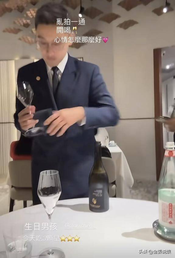 餐厅的服务员应该是专门为他们开的瓶,倒酒的时候很讲究,每个杯子里的分量都控制得刚刚好。