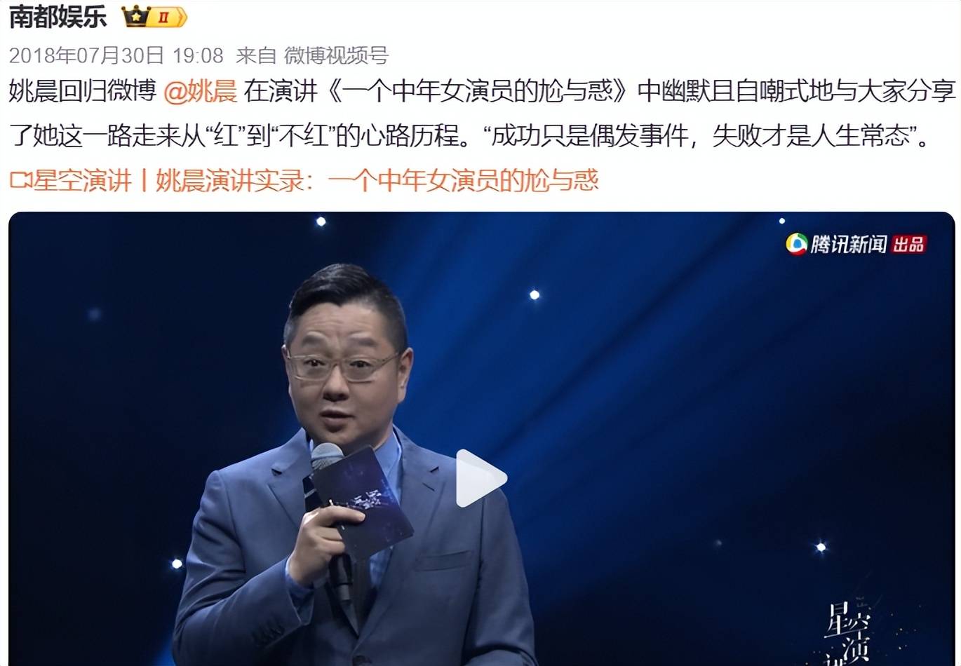 早在七年前,39岁的姚晨就在演讲中卖惨,感慨自己不红了,提到自己身为一个中年演员的不易。