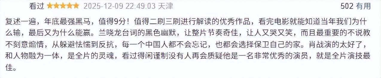 好电影离不开好角色、好演技,主演肖战的演技也广受好评。