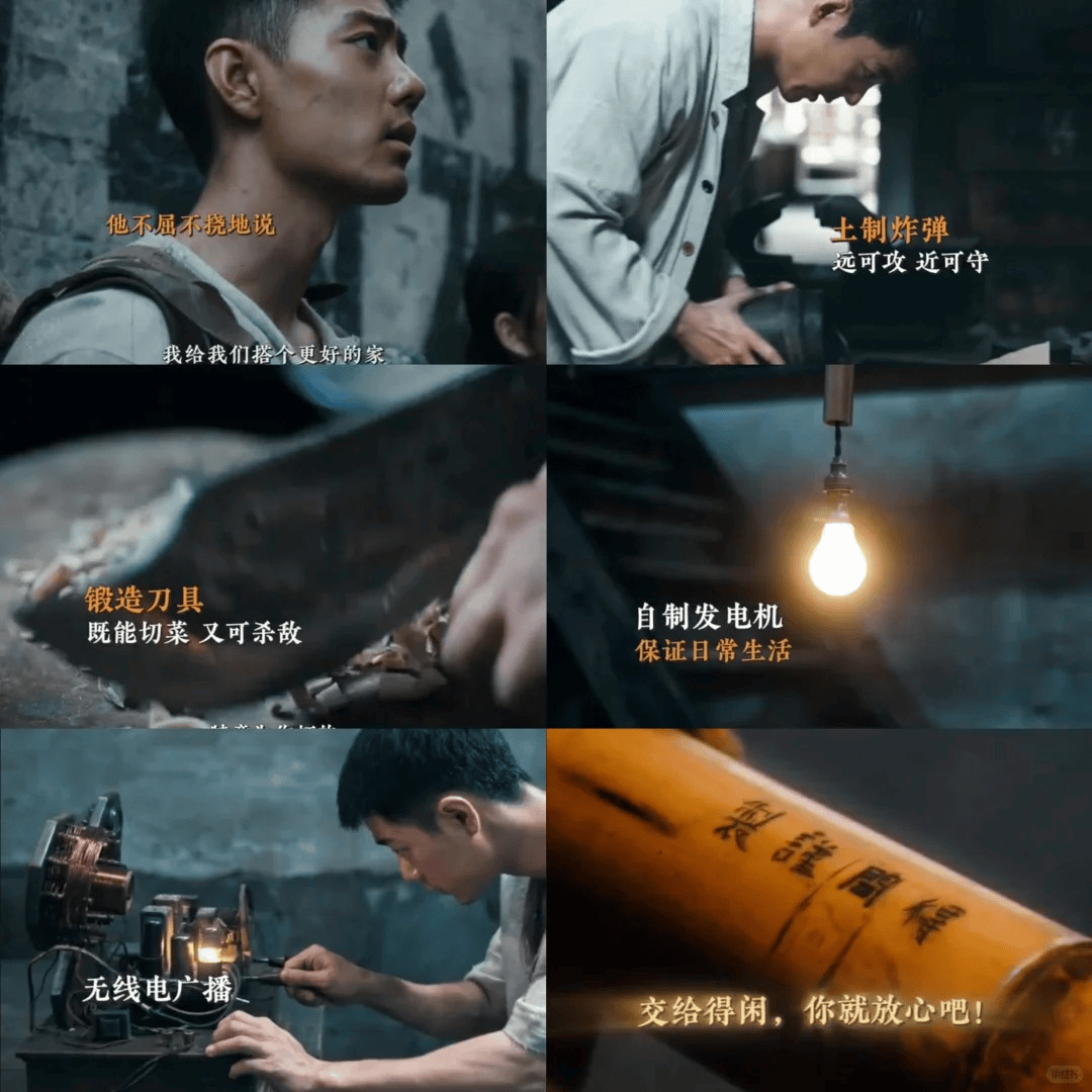 在未被日军侵扰的日子里,他始终居安思危,自制炸弹、发电机、无线电广播,锻造刀具,为可能面临的危险做足准备。