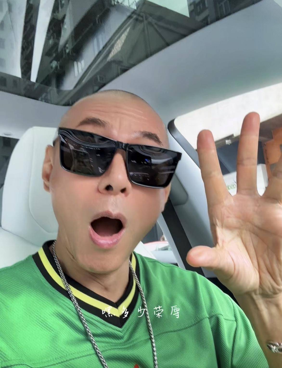 虽然是在车里自拍,但是毫不影响江华的兴致,他戴着墨镜看起来酷酷的,不时的还会做一些搞怪的表情,与其过往的形象会产生一定的反差。