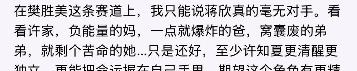 在剧中与蒋欣搭档演母女的许娣,评价呈现两极分化。喜欢的观众认为她将喻静香这位母亲演得活灵活现,十分接地气。
