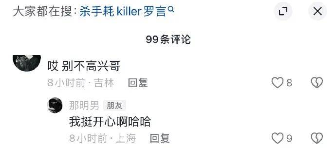 杀手耗在最新视频中用上了罗言的《后视镜》当BGM,这还是他第一次用罗言的歌,他发文表示:杀手耗是什么东西?我那明男直接夺舍。
