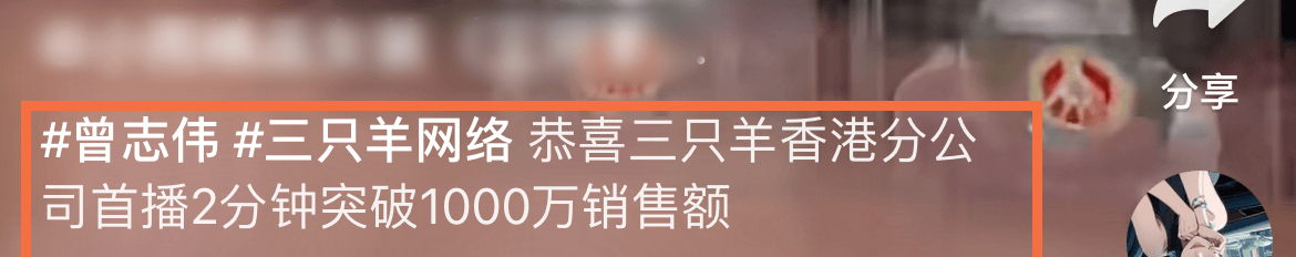 第三个看点便是直播带货。据小杨哥透露,以后会有更多的香港网红以及明星参与直播带货,这句话的含义便是曾志伟掌控香港三只羊电商全局,为此才在其视频账号上开始带货,相关的佣金也会直接到其账号。