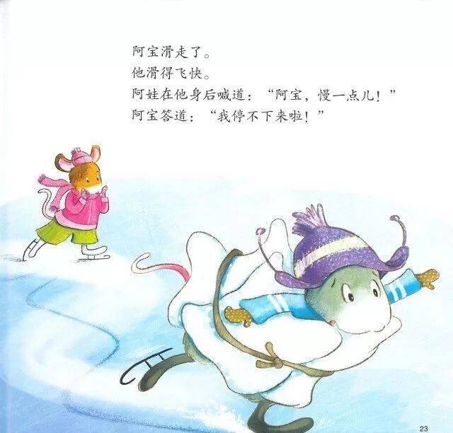“池塘冻上了!”阿宝说,“我们可以去滑冰啦!”