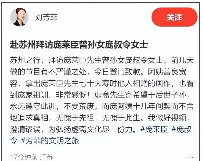 前几天,刘芳菲采访庞家后人。没想到被真正的庞家后代当场打假,而刘芳菲也陷入舆论漩涡。