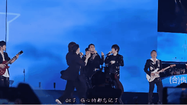 就在今年7月份,F4在五月天演唱会上还有过一次合体,其他成员不计前嫌,台上台下凡是同框都让他站C位,包括阿信在内,所有人都在努力跟他互动,几乎把他当胚胎来哄。