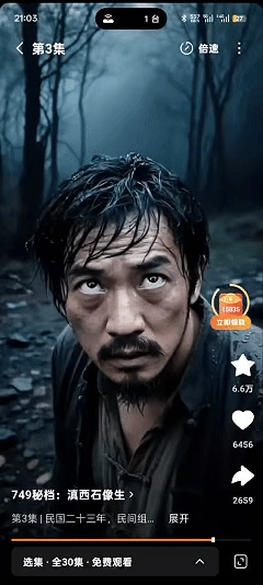 作为“749局秘档”系列的续作,《749局秘档:滇西石像生》延续了系列前作《749局秘档:秦岭邪雨》的市场热度,并且在人物塑造、剧情悬疑感与视效呈现上实现了可感知的进步,是AI真人短剧民俗题材系列化的一次有效实践。