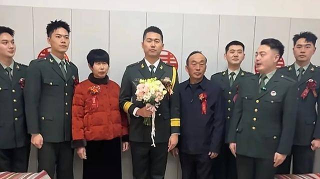与此同时,还有他的伴郎团,现役的可以穿,但是退役的就不能穿了,