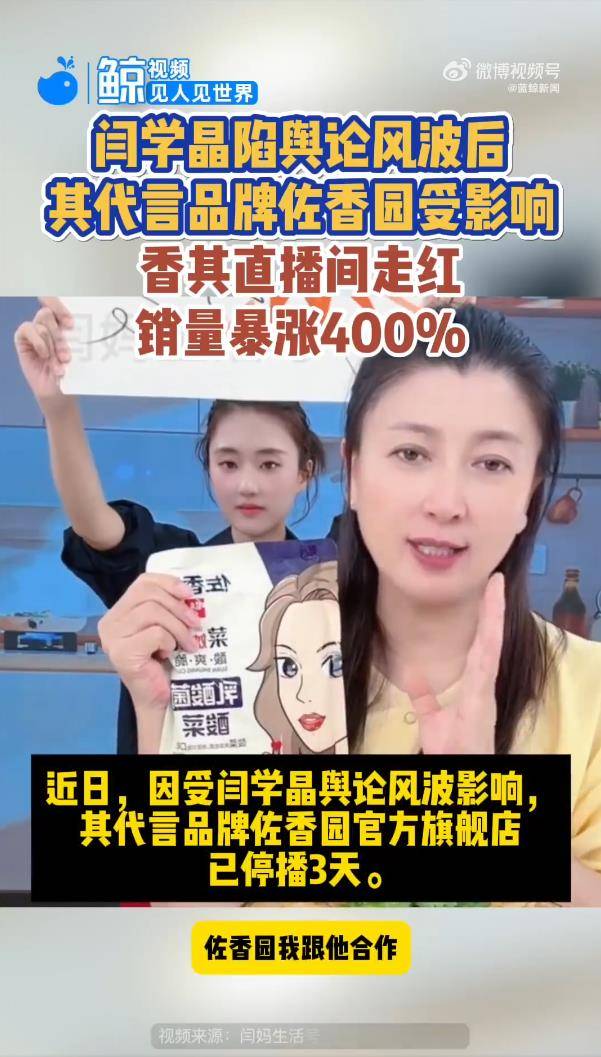 有意思的是,这场代言人“翻车”事件,意外搅动了调味品江湖的格局。就在佐香园焦头烂额之际,同样主打东北大酱的竞争对手“香其食品”却在直播间迎来了泼天流量。第三方数据显示,1月7日,香其直播间观看人次暴增,销售额较平日飙升400%,多款产品卖到预售。这戏剧性的一幕,被网友调侃为“一家塌房,全家吃饱”,一场无心的言论风波,竟演变成了实实在在的市场份额争夺战。