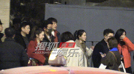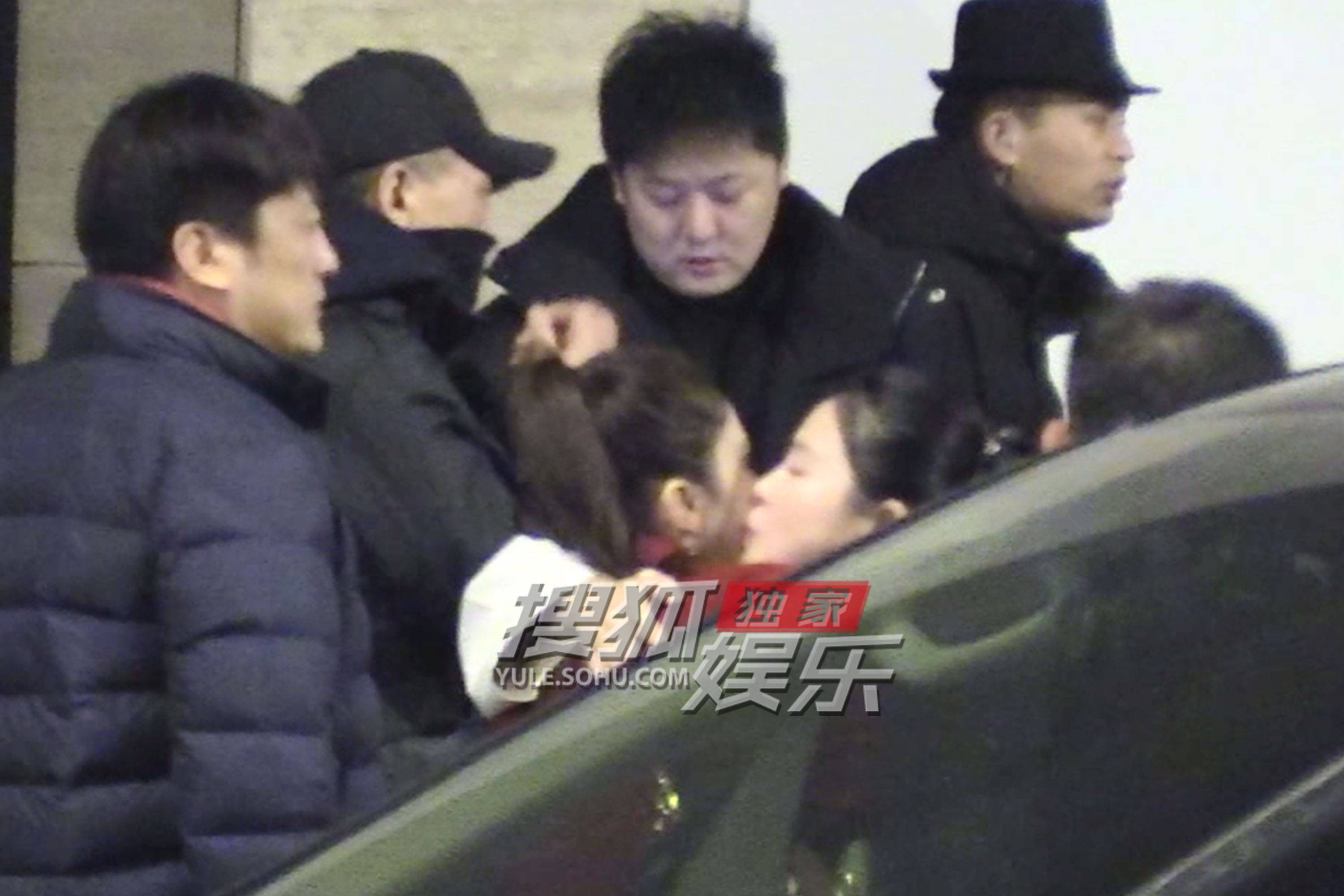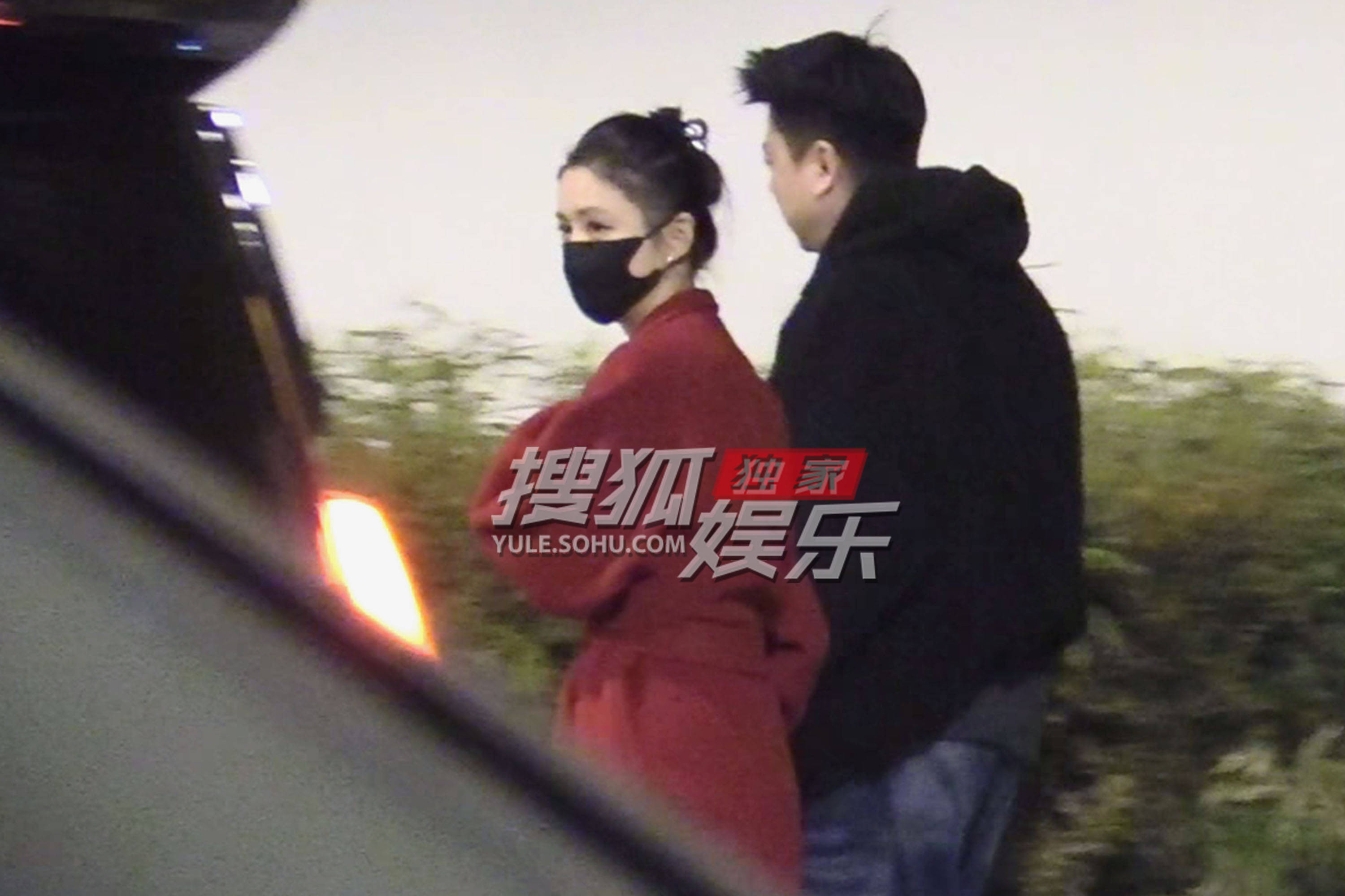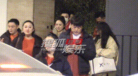 董璇把关悦、佟大为夫妇送上车。