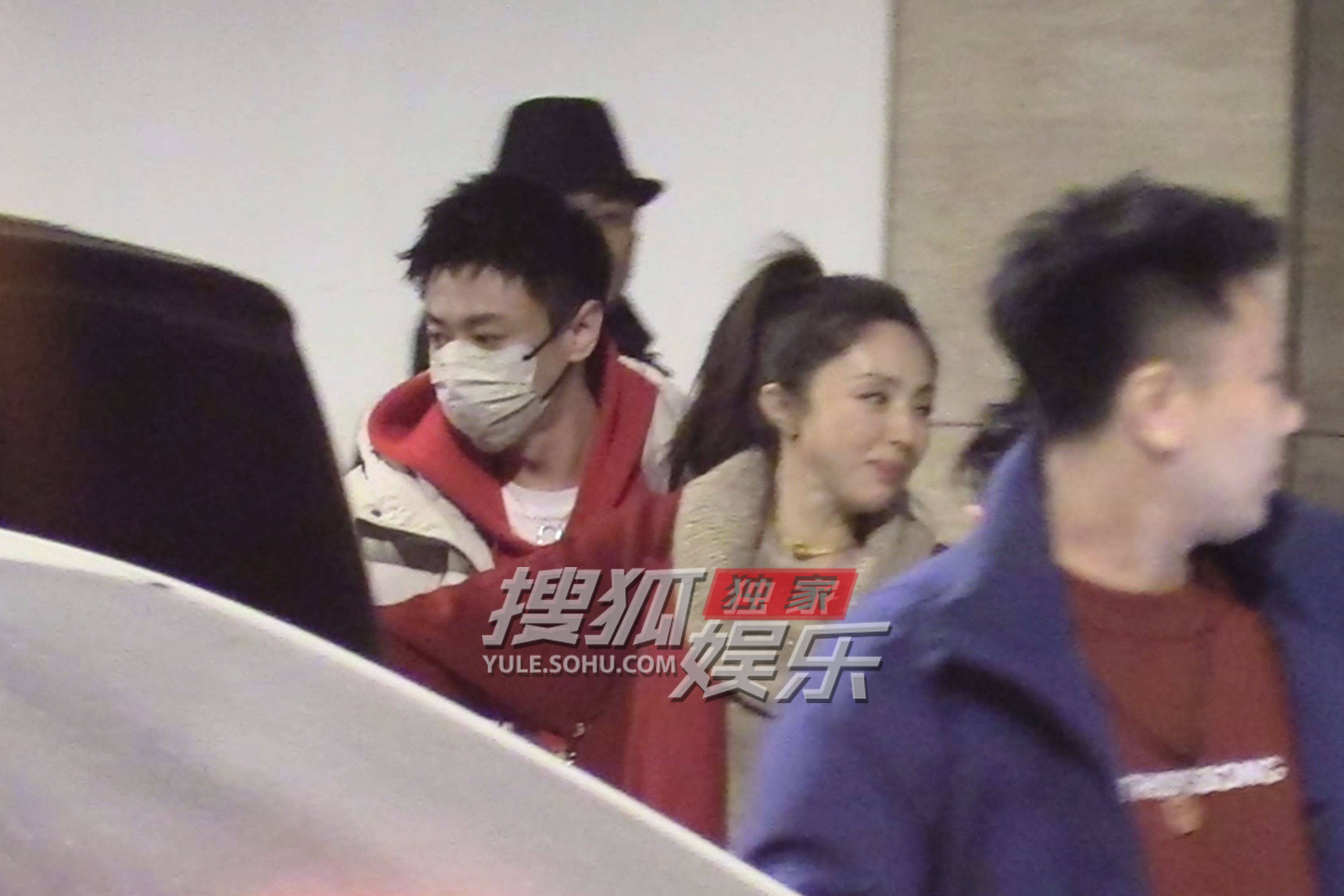张维伊穿着红色帽衫,发型清爽,挽着好友出门气色超赞。