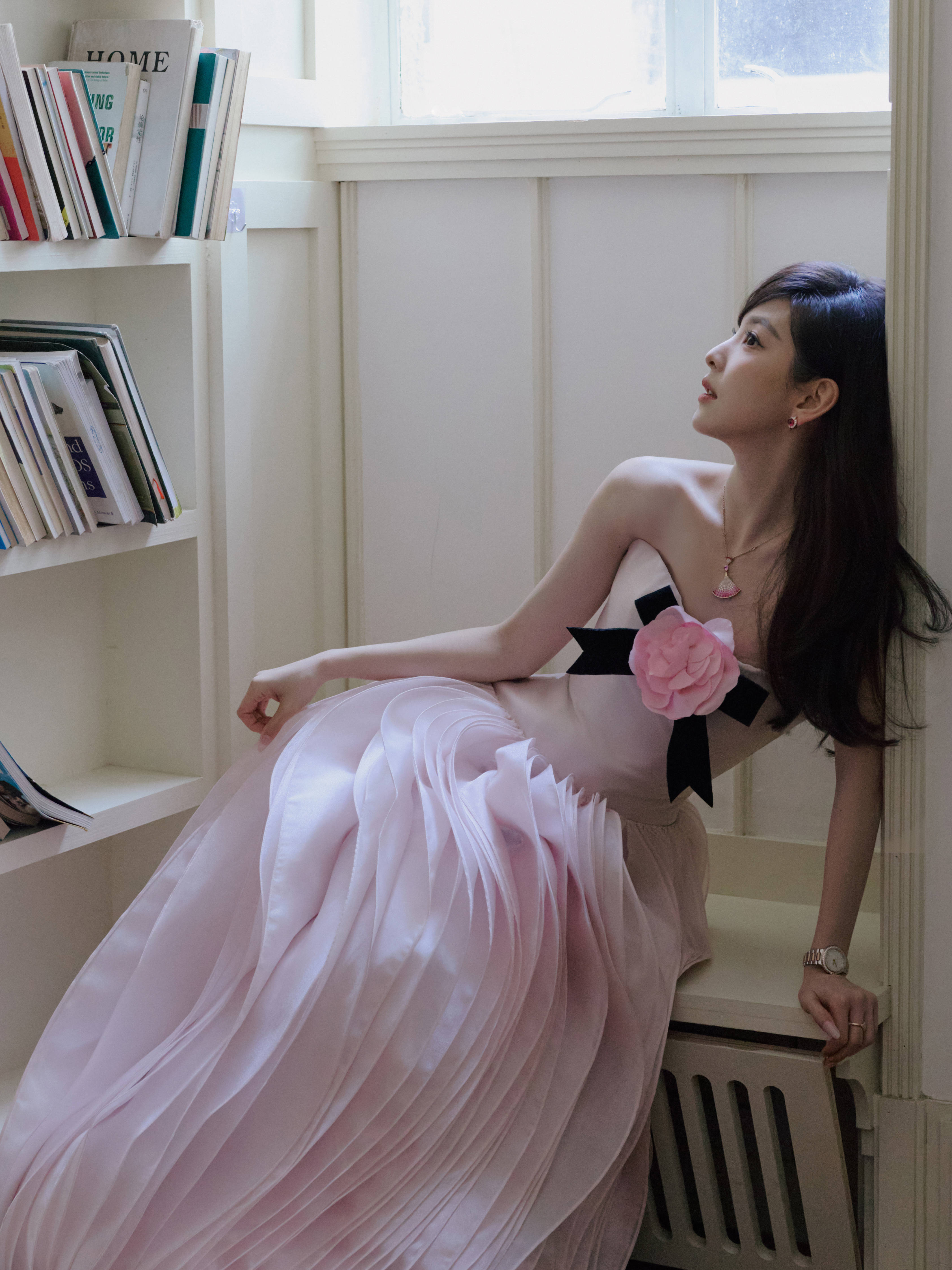 搜狐娱乐讯 1月12日,章若楠工作室公开一组章若楠的活动随拍,照片里的她穿粉色抹胸裙,长发披肩,甜美可人。
