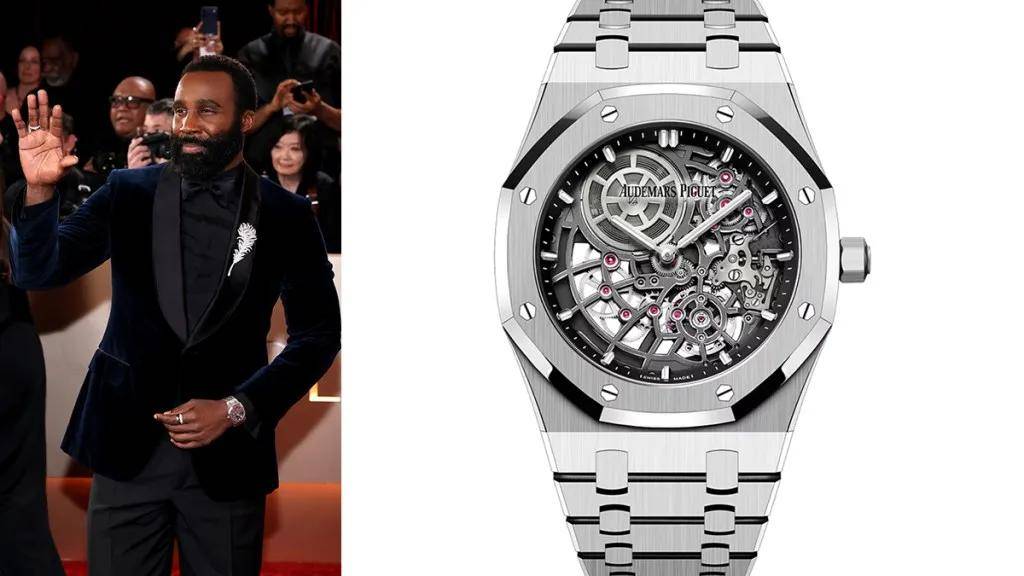 同戴AP的还有Tramell Tillman,他选了皇家橡树“Jumbo”超薄镂空腕表,18K白金加上镂空表盘,机械美感优雅又硬核。