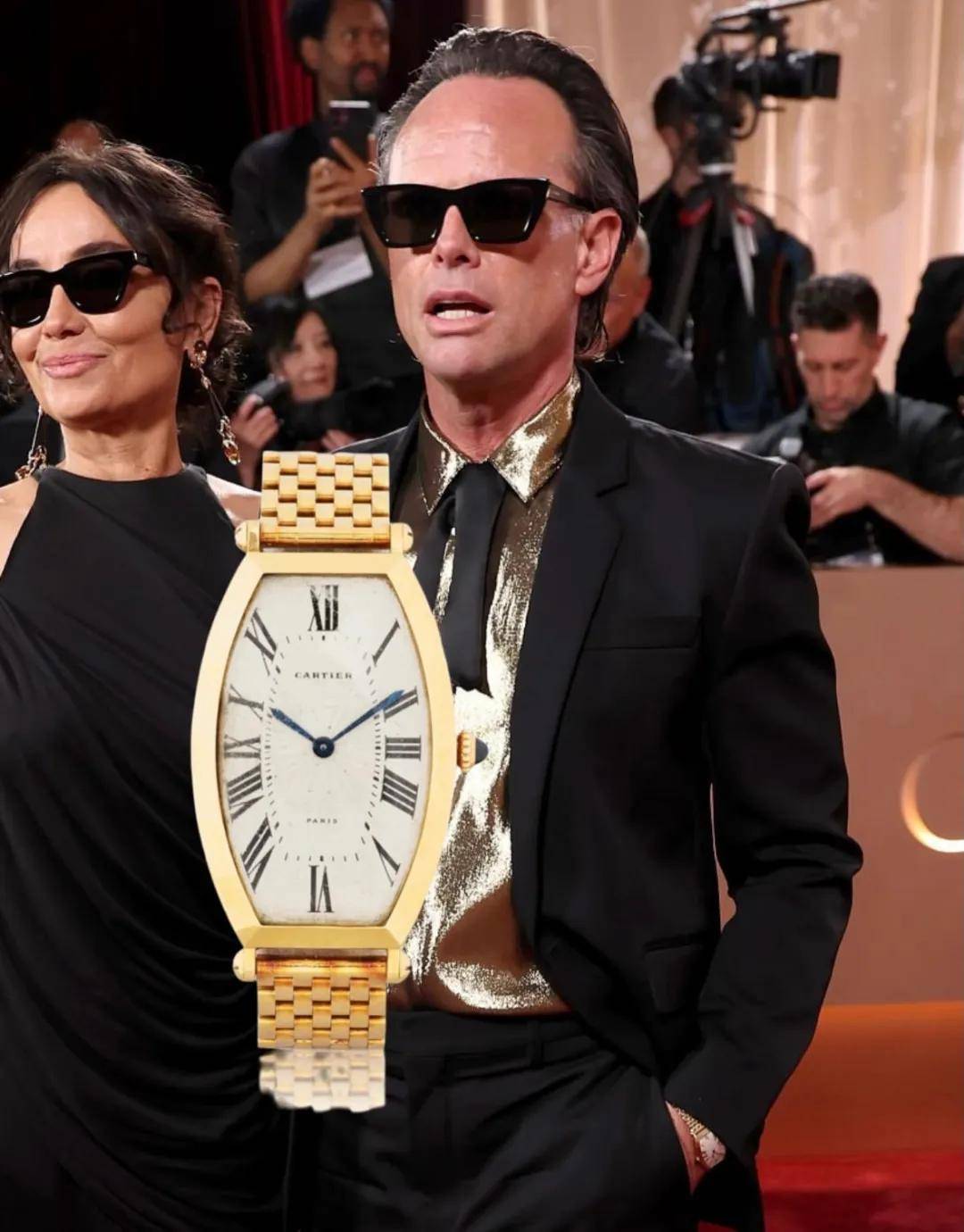 老戏骨Walton Goggins则展示了极高的老派审美,选了一枚古董卡地亚Tonneau酒桶形腕表,优雅永不过时。