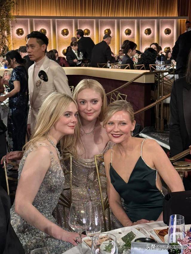 金球奖内场,范宁姐妹和邓斯特合影: