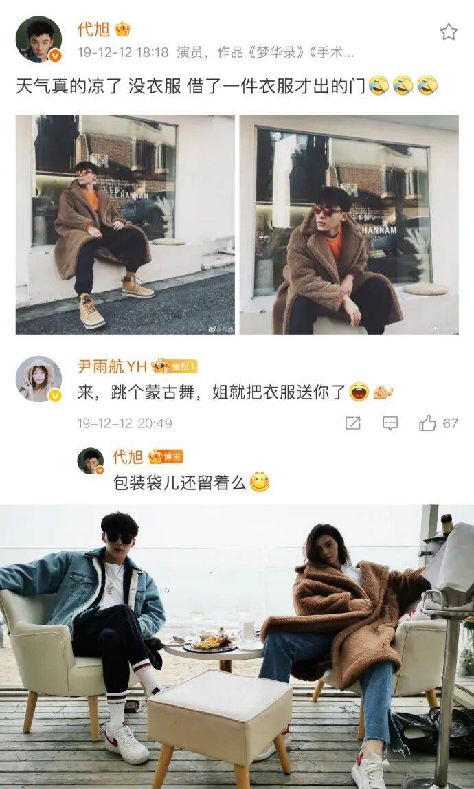 尹雨航叫代旭“小花”,代旭叫尹雨航“大树”: