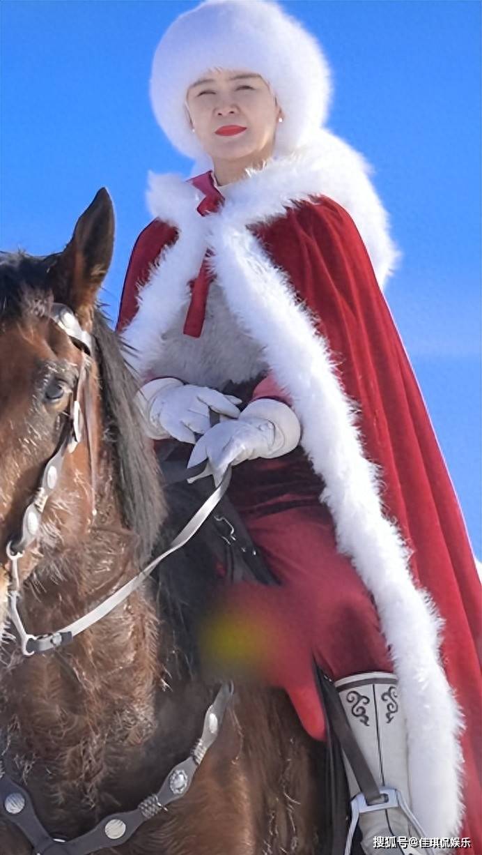 视频里,贺娇龙身披红斗篷,在昭苏的茫茫雪原上策马奔腾。