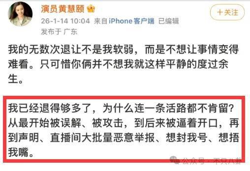 这篇微博的最后黄慧颐表示:如你俩所愿,我将不再保留。