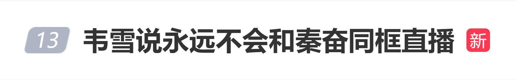 镜头前的韦雪,情绪激动,措辞坚决。她划出的三条红线清晰无比:一否“剧本合作”,二证“关系断绝”(半年零联系),三立“未来禁令”(永不同框直播)。这波操作,被不少网友解读为“彻底撕掉‘秦奋前任’这个最显眼的标签”。更有评论犀利指出:“这是终于明白,靠前任话题带来的流量,终究是柄双刃剑。”