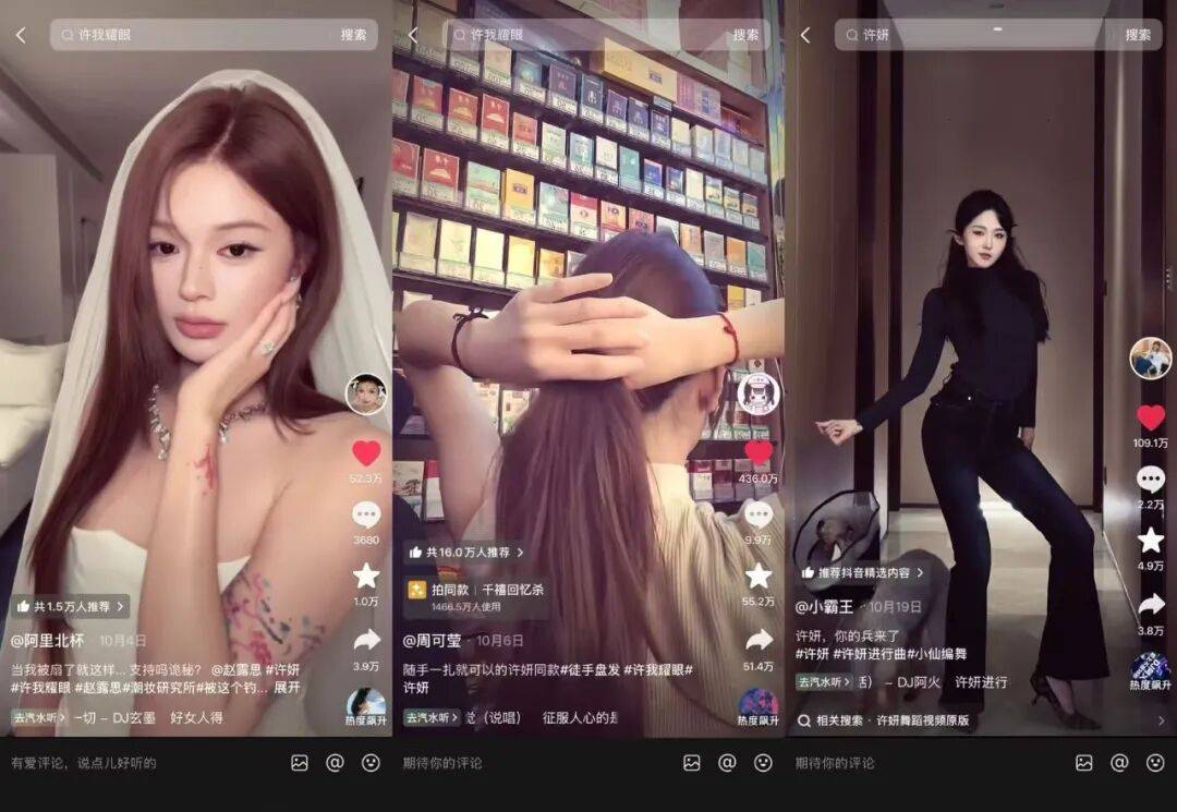 其次,是基于玩梗的内容裂变。抖音海量用户通过模仿、玩梗、互动共创等方式参与剧综内容二创,实现了PGC至UGC的裂变破圈。