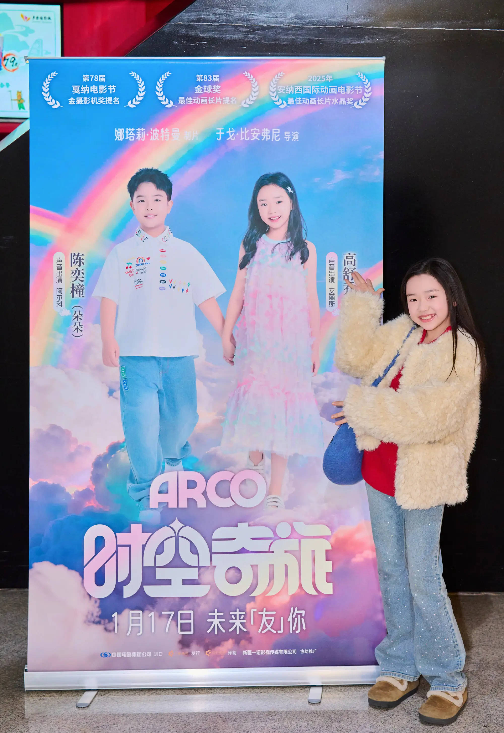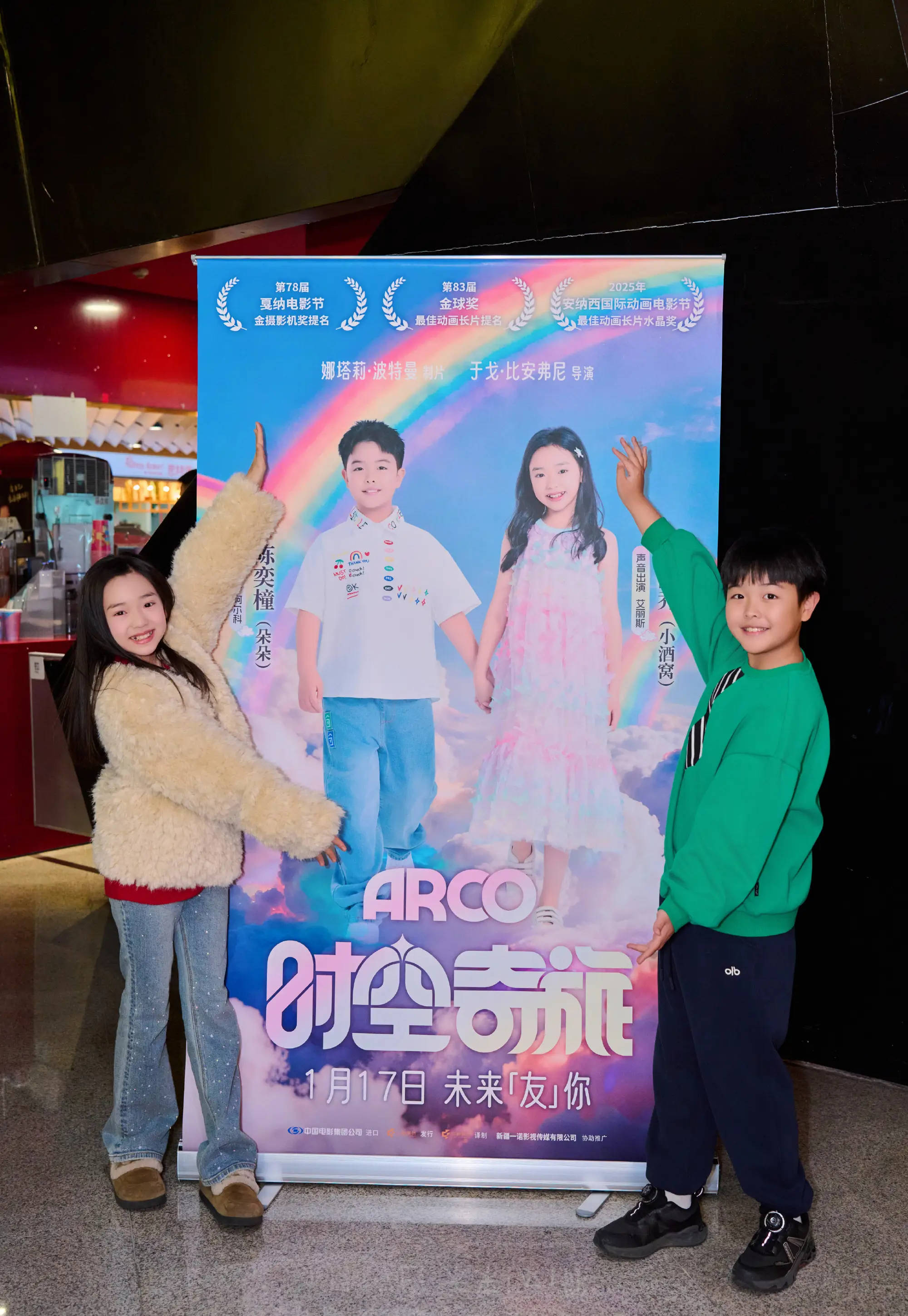搜狐娱乐讯 17日,董璇女儿小酒窝和佟丽娅儿子朵朵一起参加了一场线下亲友观影会。当天。他们观看的是法国动画电影《时空奇旅》,该片宣布了小酒窝和朵朵分别为译制版艾丽斯与阿尔科配音。