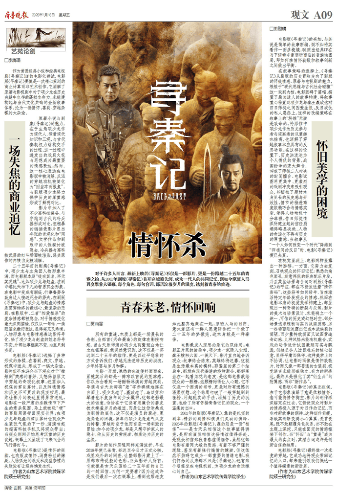 2001年的剧版《寻秦记》,靠的是扎实的剧本、精妙的剧情和演员们灵动的演绎。2025年的影版《寻秦记》,靠的则是一份“相信”——是古天乐相信这个故事值得讲完,是所有演员相信这份情谊值得奔赴,是观众相信那段青春值得缅怀。虽然这部电影有着网大般的质感,有着不够严谨的逻辑,甚至有着强行煽情的嫌疑,但这依然不妨碍它成为一部重要的情绪电影。我们怀念的从来都不只是《寻秦记》,还有那个曾经坐在电视机前,为项少龙的命运揪心的自己。