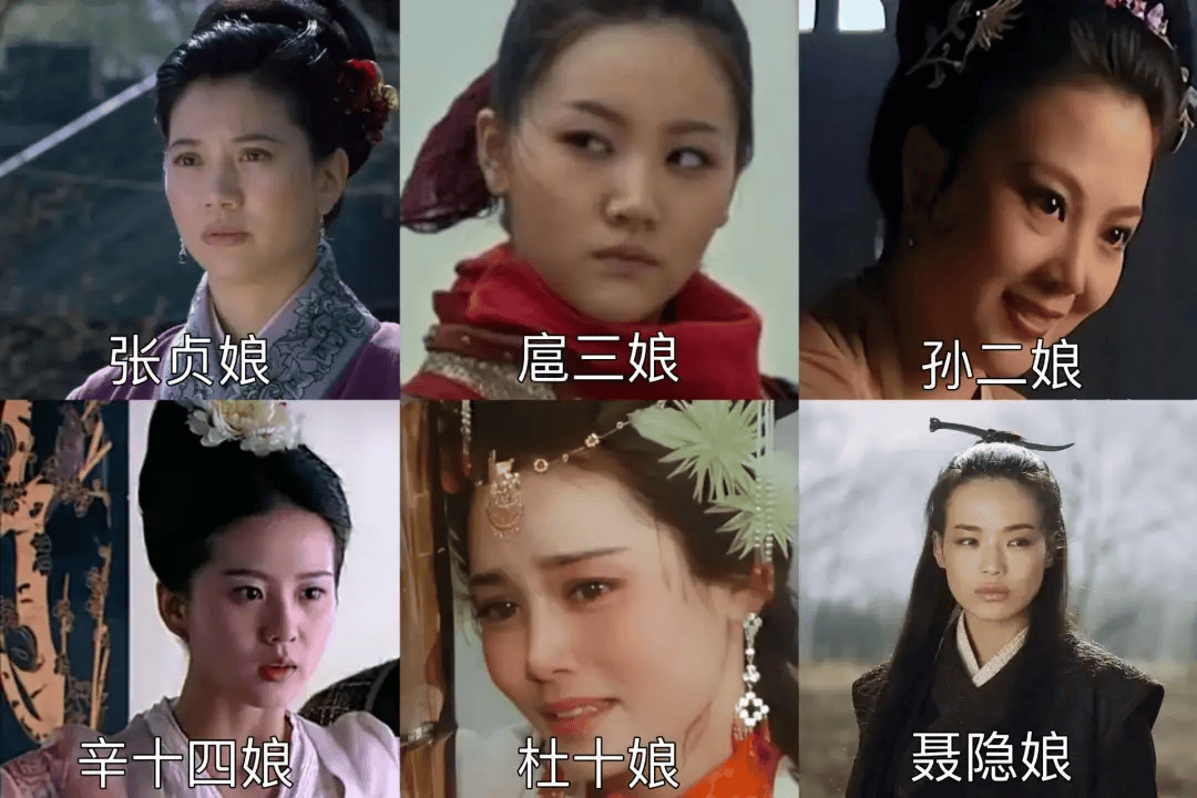 《水浒传》中林冲的夫人叫张贞娘,此外还有大名鼎鼎的“一丈青”扈三娘和“母夜叉”孙二娘;《聊斋志异》里的辛十四娘、胡四娘、封三娘;汤显祖《牡丹亭还魂记》的女主人公杜丽娘;冯梦龙所著《警世通言》的杜十娘以及唐代裴铏所著《传奇》的聂隐娘,名字都是以“娘”结尾。
