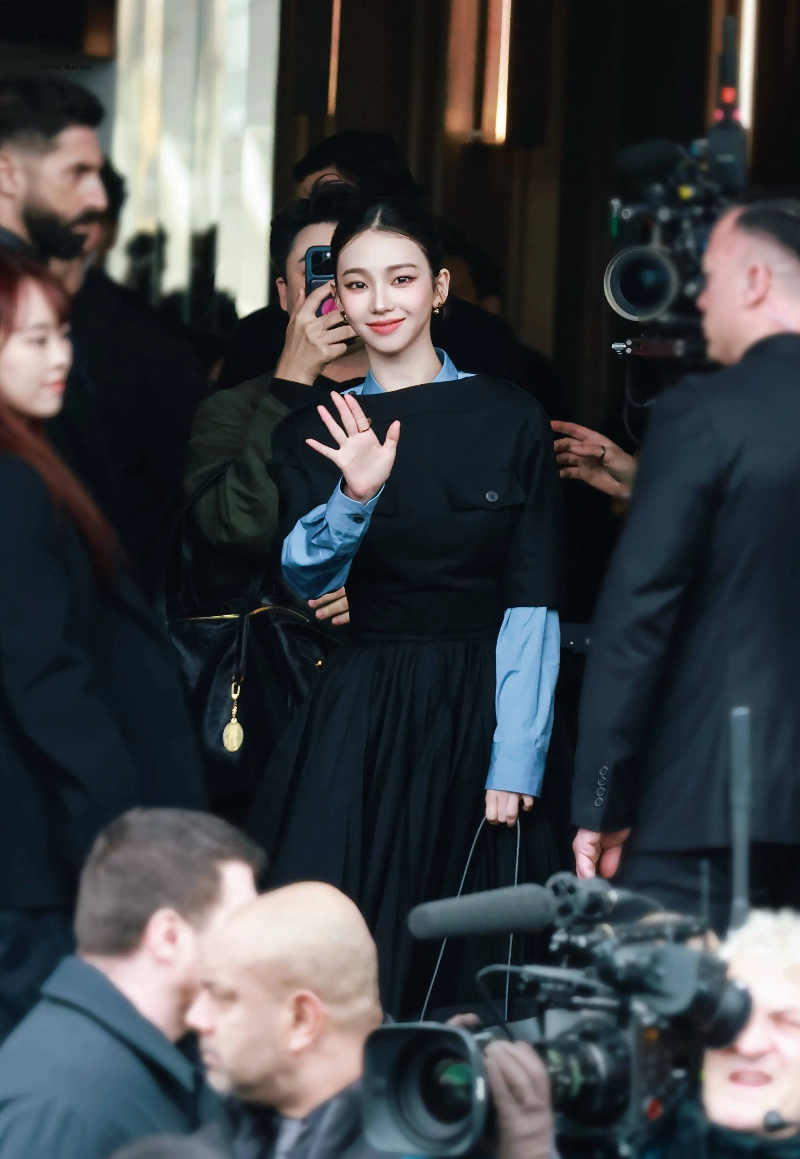 搜狐娱乐讯 18日,韩国女歌手柳智敏参加米兰男装周的G社生图曝光,她身穿黑色连衣裙,搭配浅蓝色内衬,层次感分明。