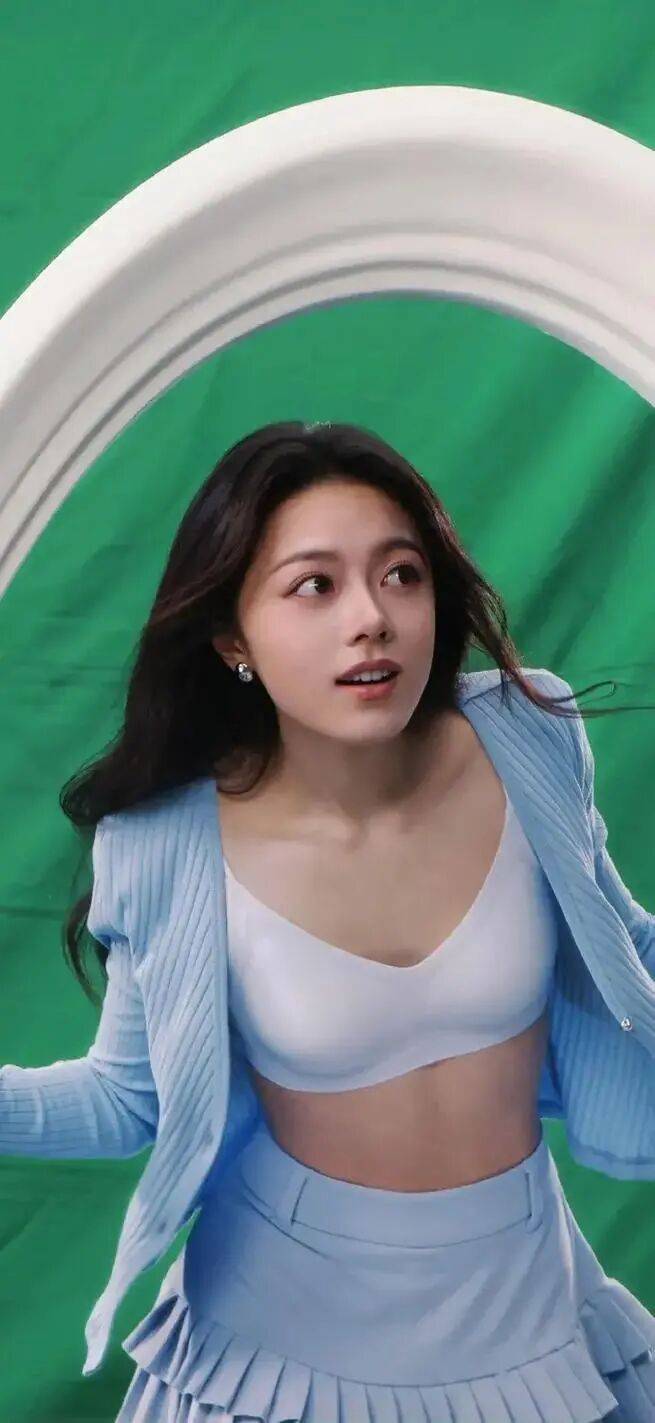 赵今麦身为当红女星,拍过很多性感写真。就像这张,她穿着浅蓝色的以上,搭配蓝色长裙和白色内衣,俏脸甜美清丽,乌黑的长发飘逸,露出自己的事业线和小蛮腰,曼妙的身材曲线,绝对性感撩人!