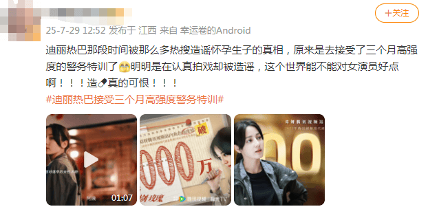 说来荒谬,热巴的“消失”是因为敬业,造谣者却认为她躲起来生孩子去了。谣言发酵时工作室没有及时澄清,是因为热巴训练时没让工作人员陪同,却被造谣者当成了心虚的证明。