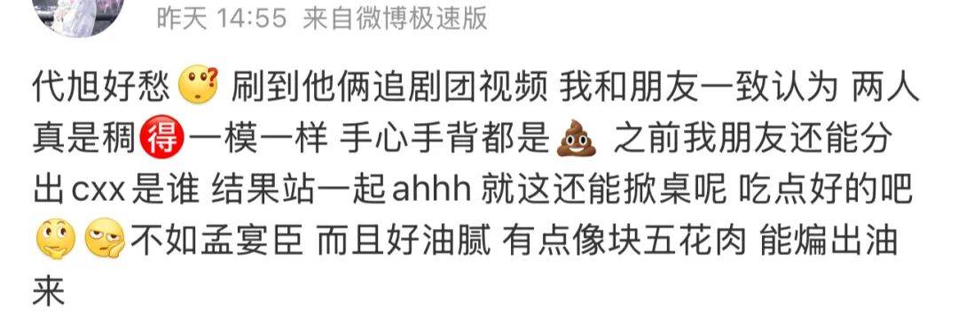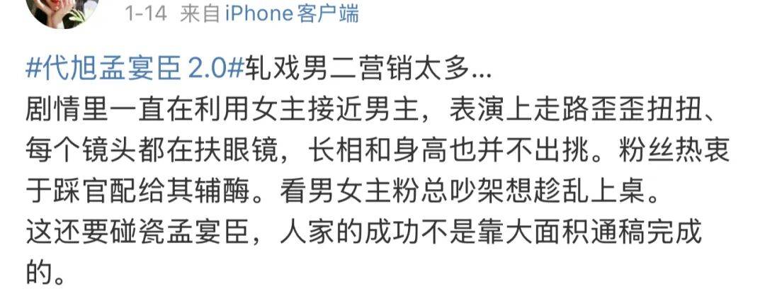 有人说他营销过了头,什么“代替陈星旭”、“孟宴臣2.0”,甚至“一款吕子乔型帅哥”都出来了,这瓷碰得像“一辆迈巴赫一辆沃尔沃”。