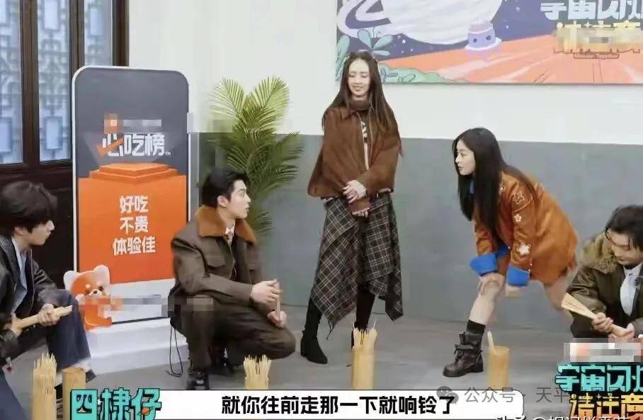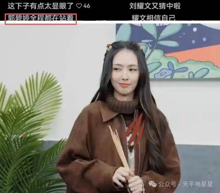 再说郭碧婷,她的综艺表现更是令人感到一丝丝的不适。她太久没有参加综艺了,显得有些不自在,整场节目几乎都需要别人频繁cue她,她自己完全没有接梗的能力,更没有展现出任何放松的表现。整个节目下来,郭碧婷一直像个局外人般存在,站得僵硬,表情木讷。尤其是在一个环节中,大家都蹲下了,她却仍然站着,一动不动,这种极度的不协调感,实在让人感到尴尬。