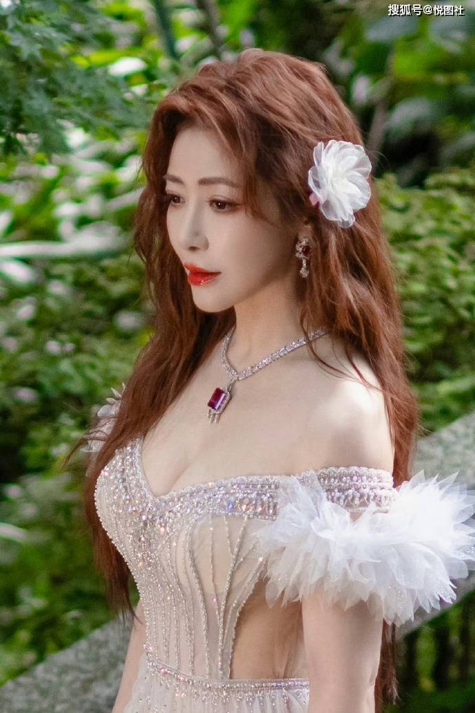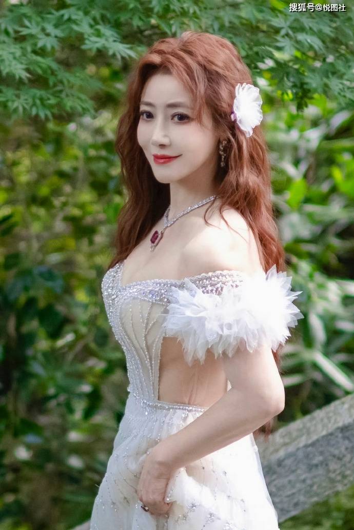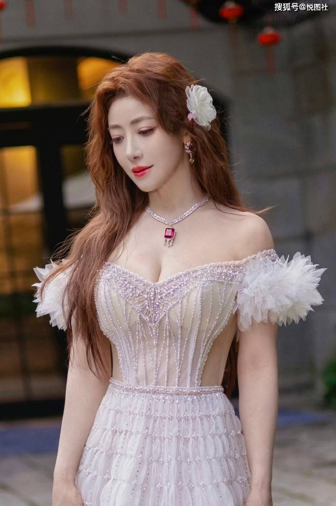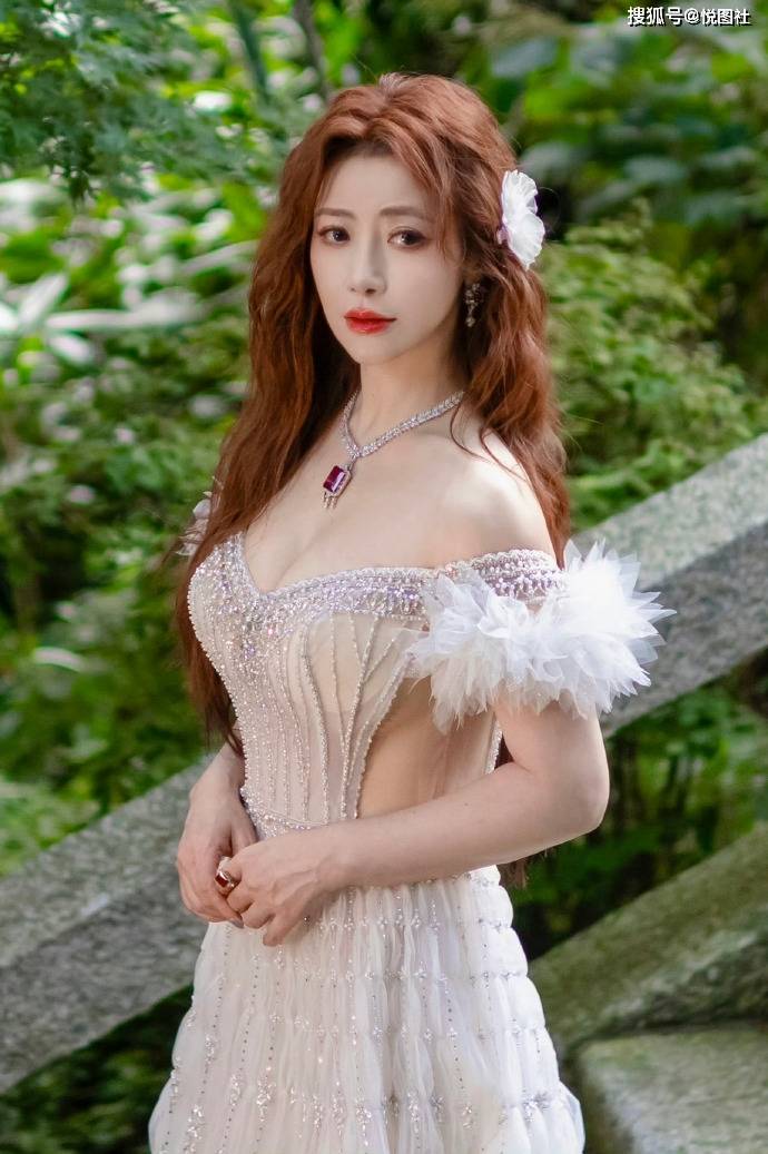 陈紫函白纱仙裙杀疯了!一字肩羽毛袖 + 钉珠剪裁