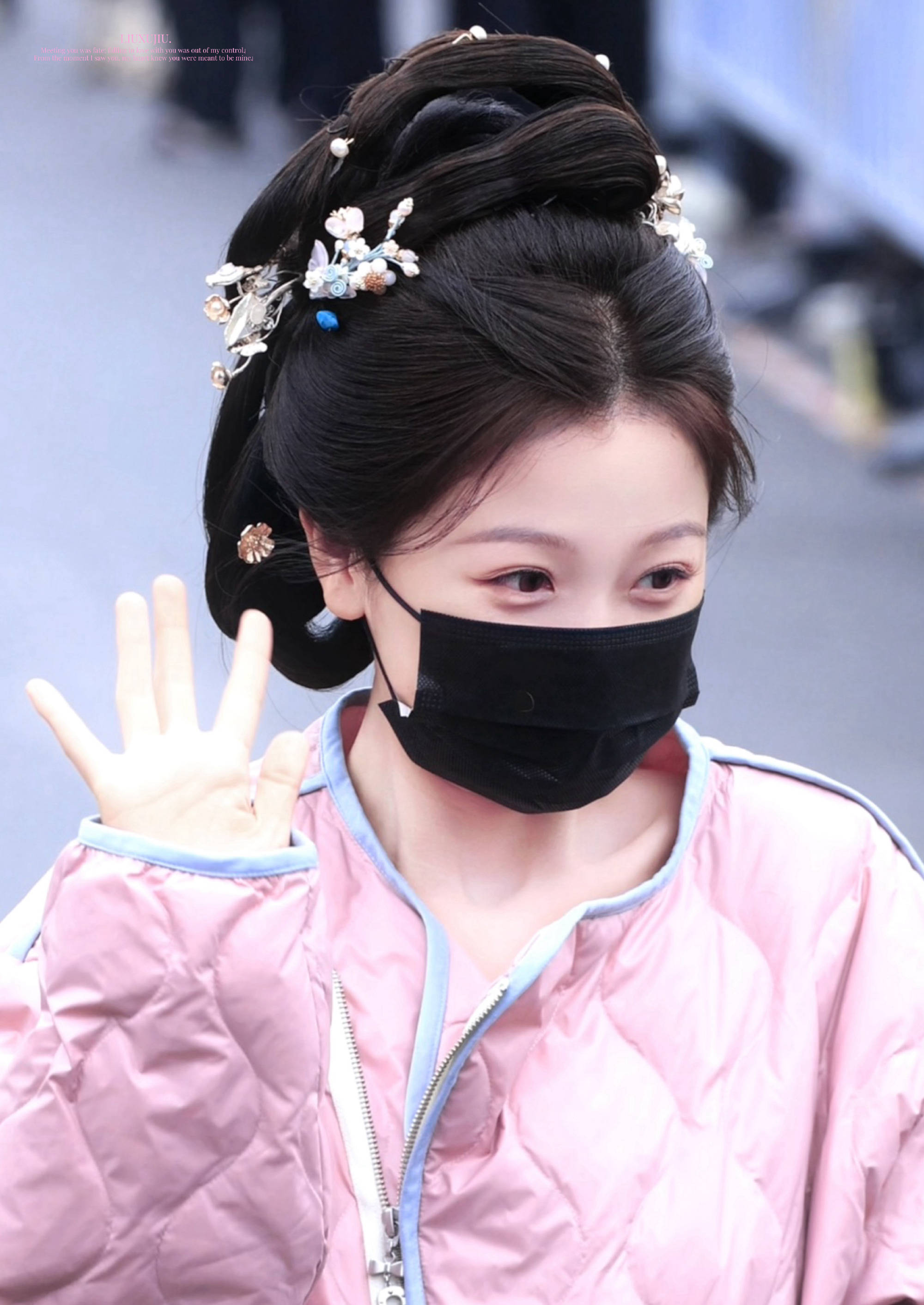搜狐娱乐讯 近日,虞书欣新剧路透释出,图中,她穿粉袄配古装发型与精致头饰,元气满满,挥手比心甜度满分。