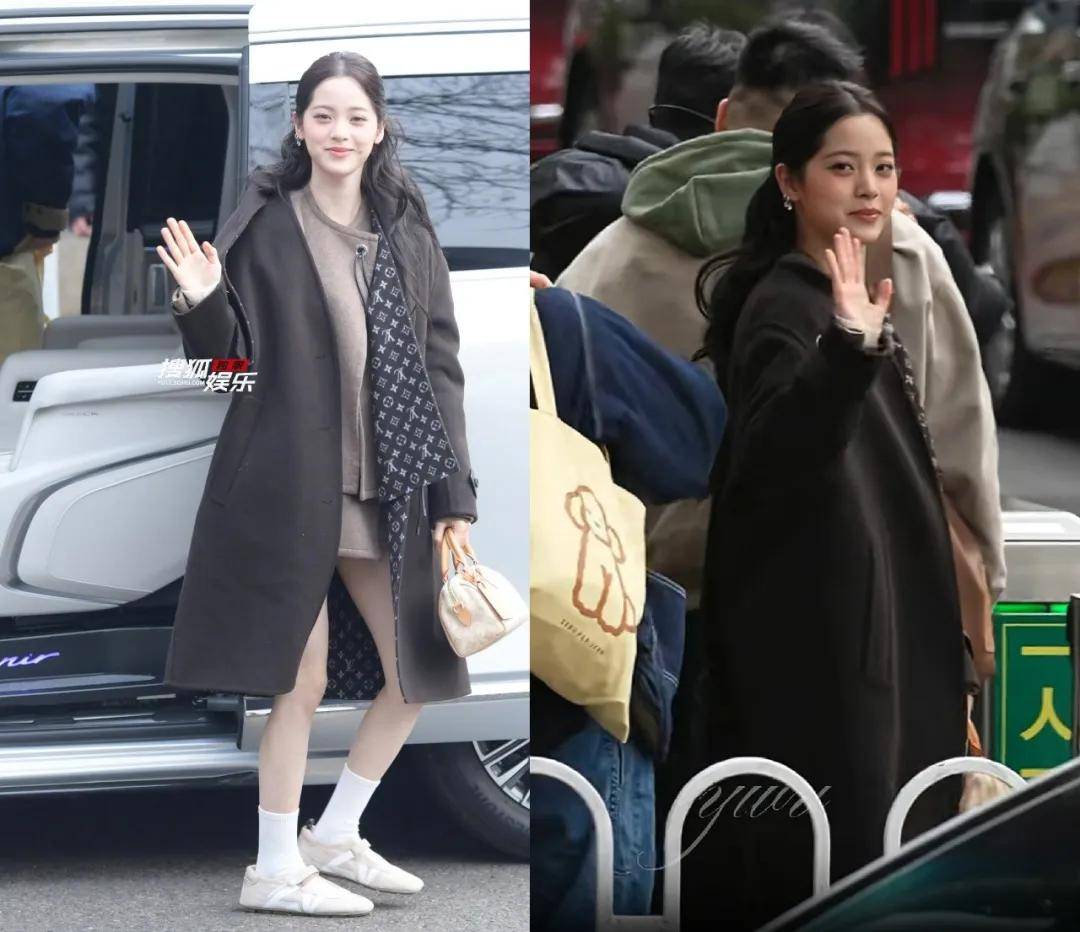 白鹿的穿搭看起来比较随意,全身都是黑色系,短款羽绒服配休闲裤和休闲鞋,很有松弛感。但她始终没有好好穿羽绒服,仿佛在凹造型,头上的红色蝴蝶结也有点瞩目。
