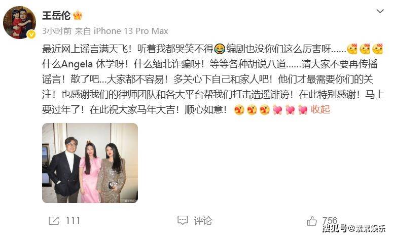不得已的情况下,王岳伦时隔10天,终于不忍了,发文为家人辟谣。