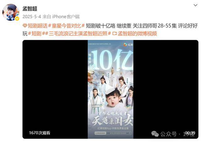 2025年5月,孟智超参演的短剧观看量破10亿,他在其中饰演配角“四师哥”。