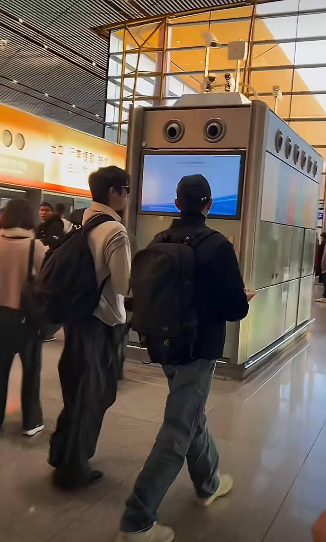 张智霖一家人同乘扶梯,互动自然温馨满满。