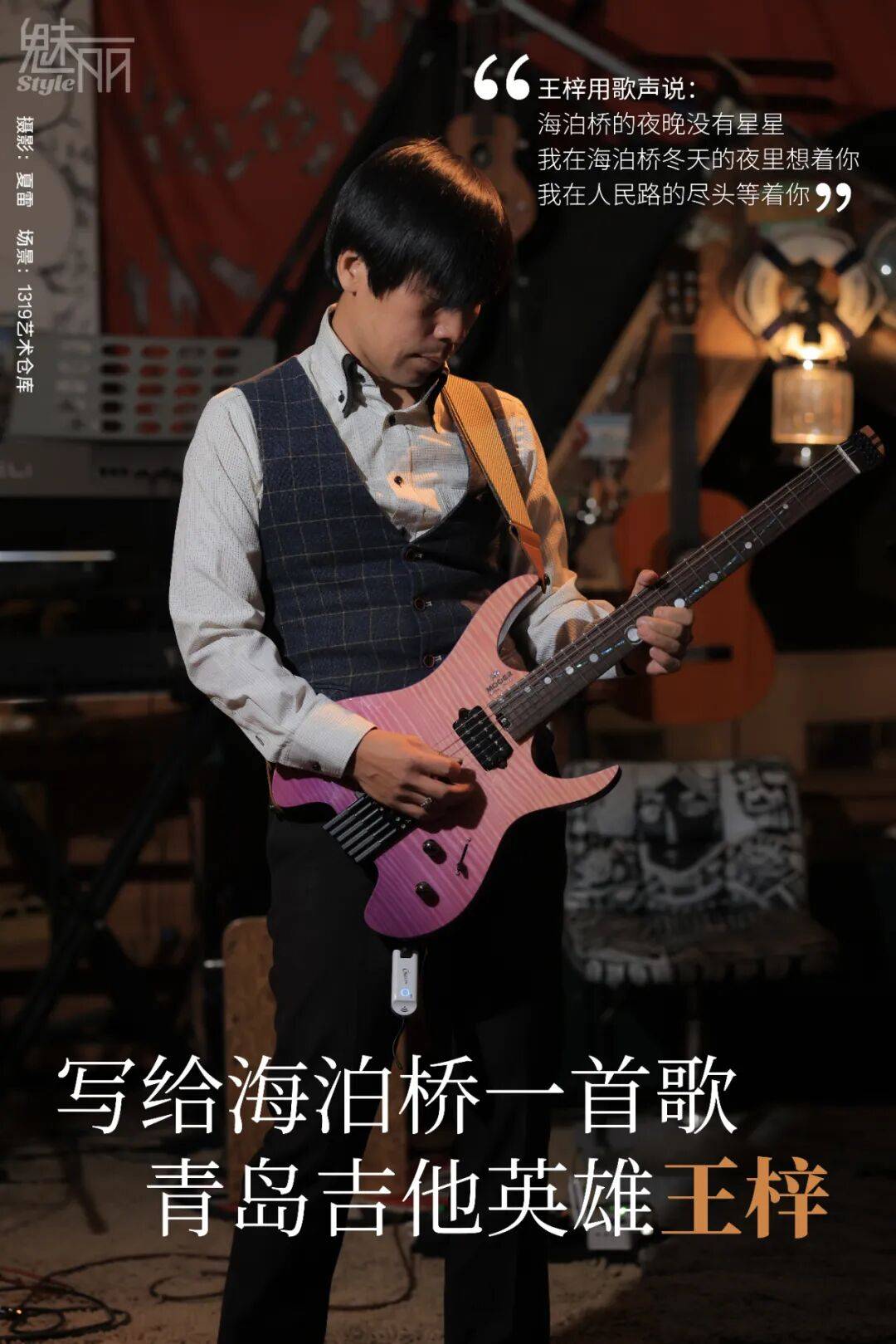 看到路口音乐人王梓现场演出,听到这首歌《海泊桥》的Solo版在黑暗的老城老路听觉被触动了。