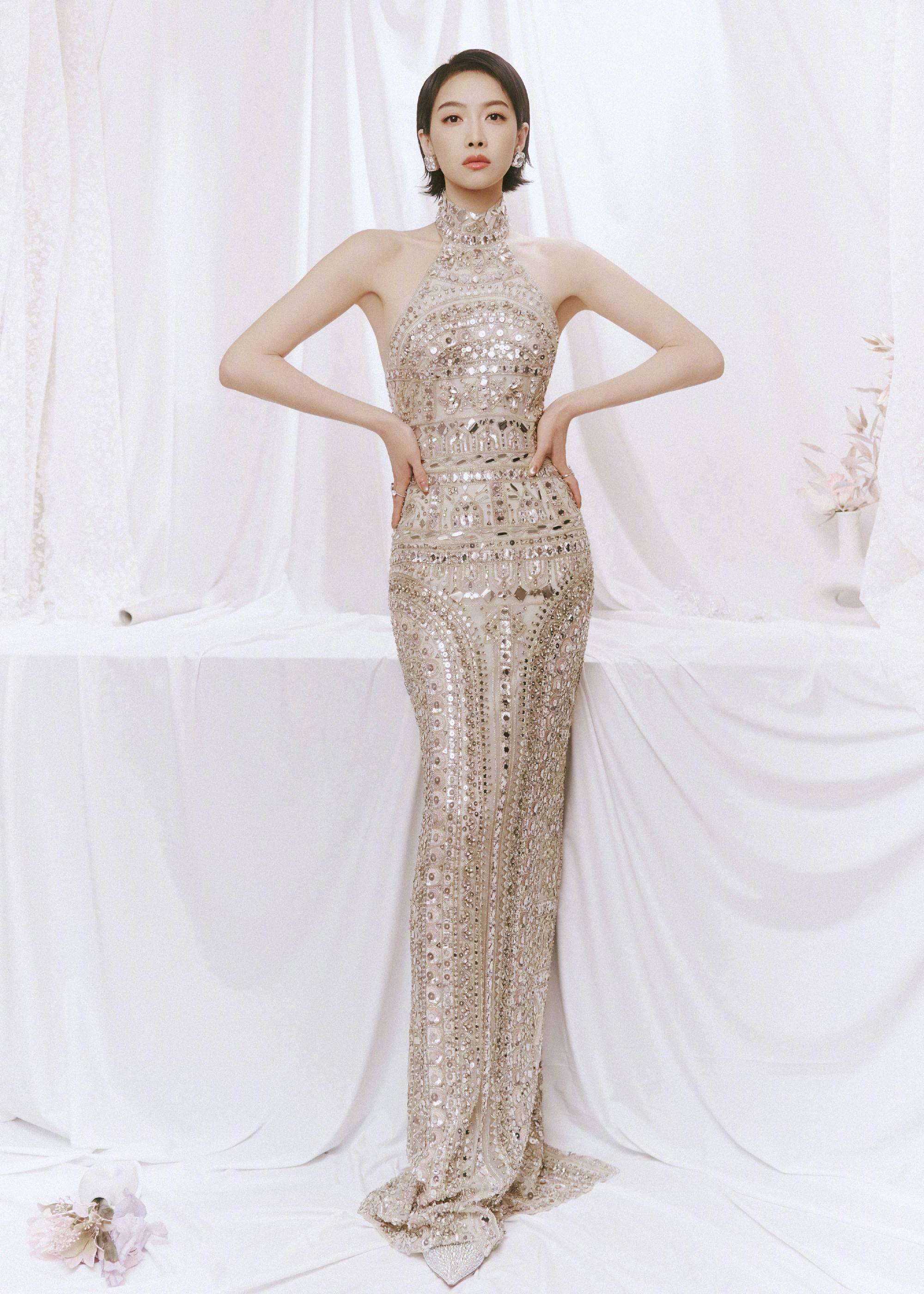 搜狐娱乐讯 近日,一组宋茜穿珠片刺绣礼服的美图曝光。
