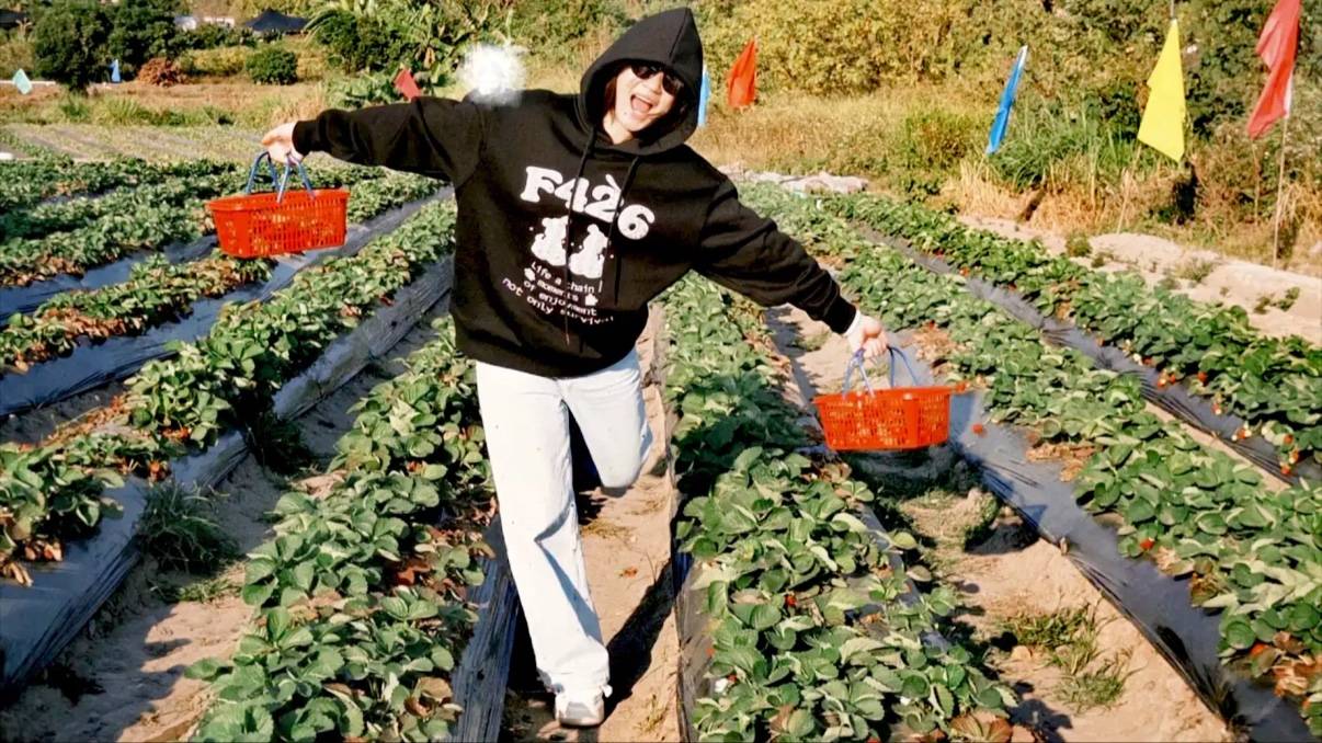 当天全妈妈穿了一件浅粉色的半拉链毛衣,配了同色系毛茸茸的马甲,打扮得比较粉嫩、显得很年轻。