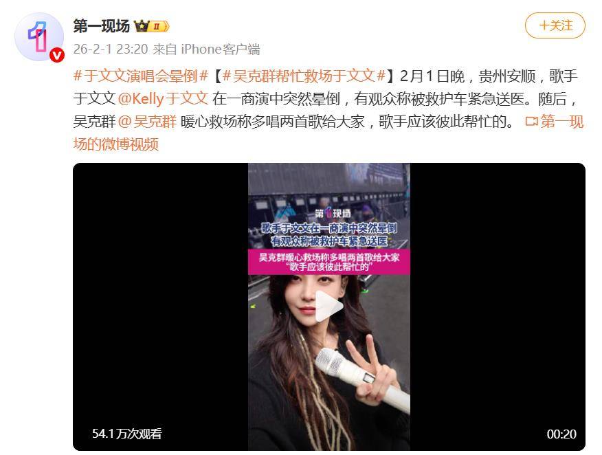 2月1日晚,贵州安顺一场低温户外商演现场,上演了惊心又暖心的一幕。歌手于文文在演唱中途突然晕倒失去意识,被担架抬离紧急送医,而随后同台歌手吴克群的举动,则让这场意外收获了全网点赞。