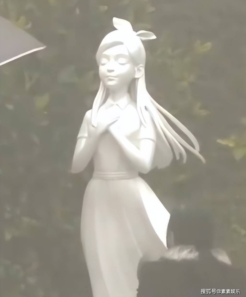 镜头下的大S雕像如天使,而且是长发披肩的状态、穿着裙子的她正闭着双眼,并且是双手放在胸前。