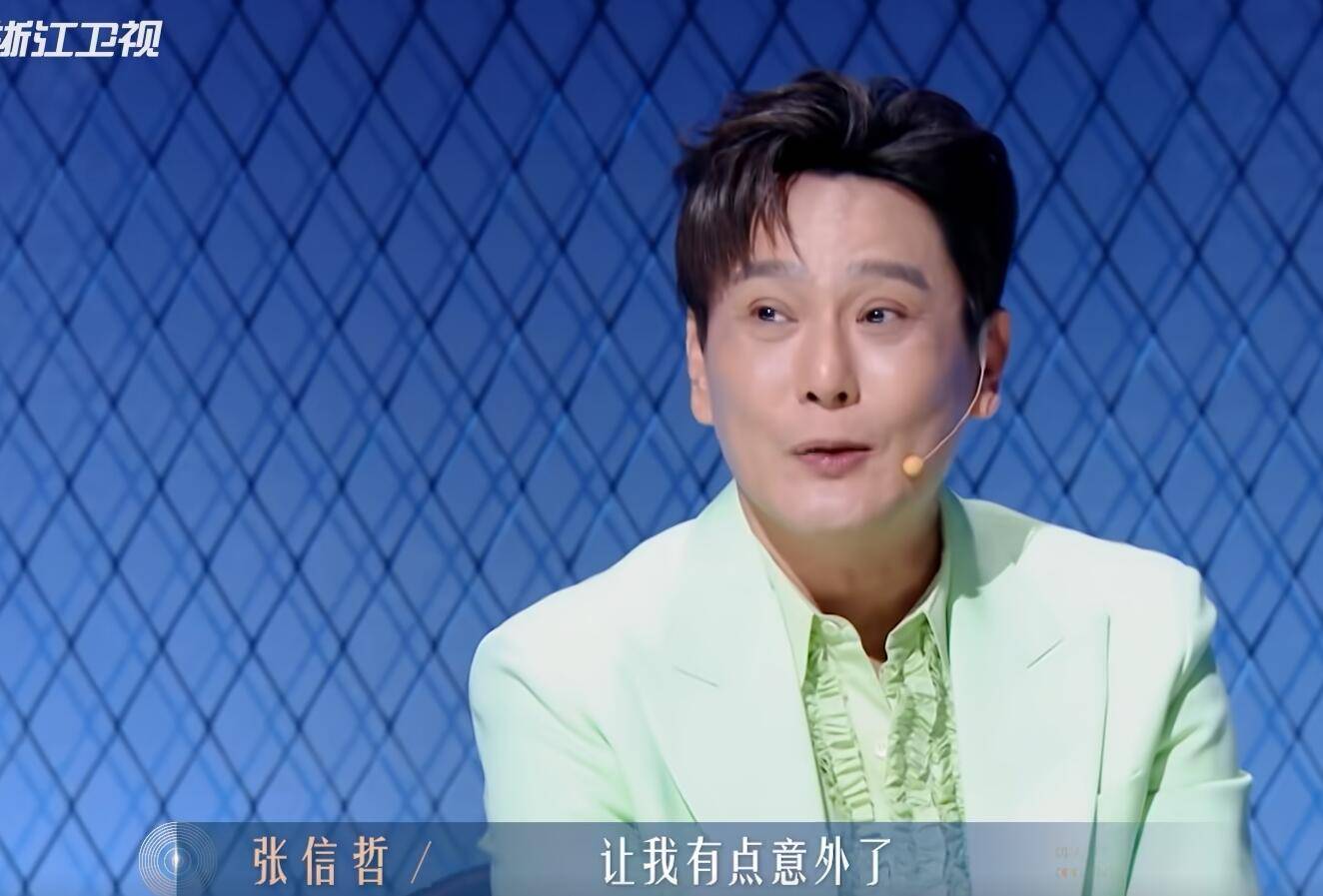 在梁源点评的时候,张信哲疯狂点头表示赞同。