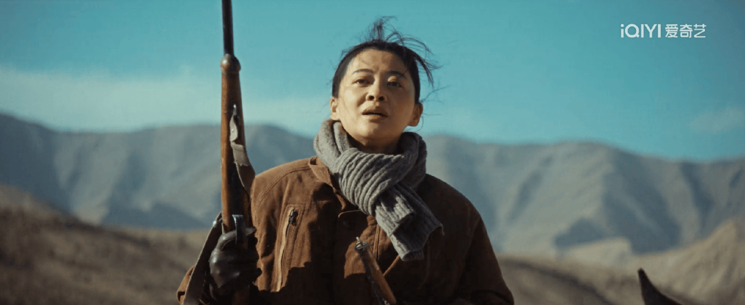 藏羚羊的死亡画面只是几帧轻轻带过,反而突出的是巡山队中队友中枪死亡,遭遇围堵的白菊,在面对盗猎团伙拿枪威胁时,充满恐惧以及悲痛的面部特写。
