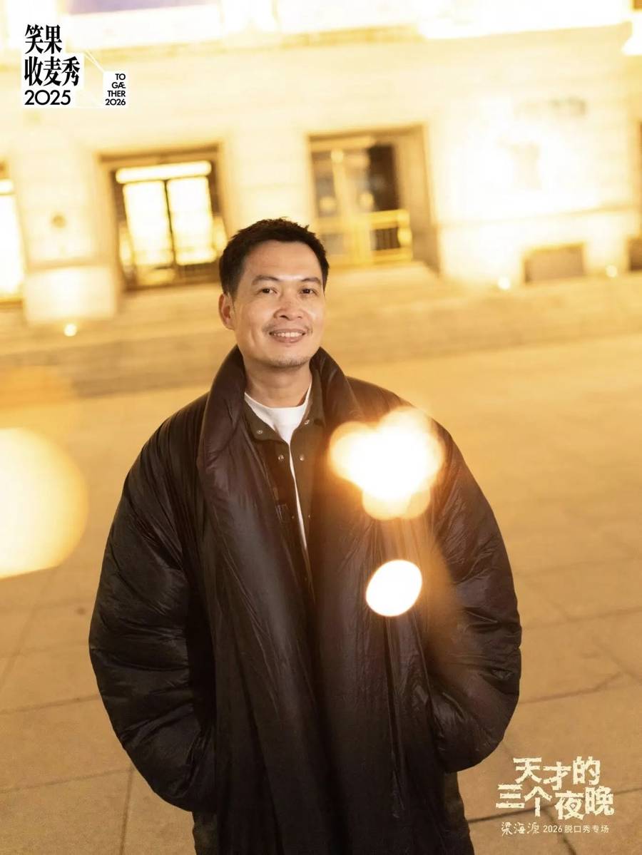 在专场前几天,主播小河见到了梁海源,他因为感冒声音有点哑,但每个字都清楚,有时玩了一个梗,会把自己笑趴在桌子上。梁海源从《今晚80后脱口秀》走出来,身上标签不少:演员、编剧、总编剧。但两个小时聊下来,你记住的不是这些头衔,而是一个人温和的质地:清醒,有种在喧嚣中自成节奏的稳定感。