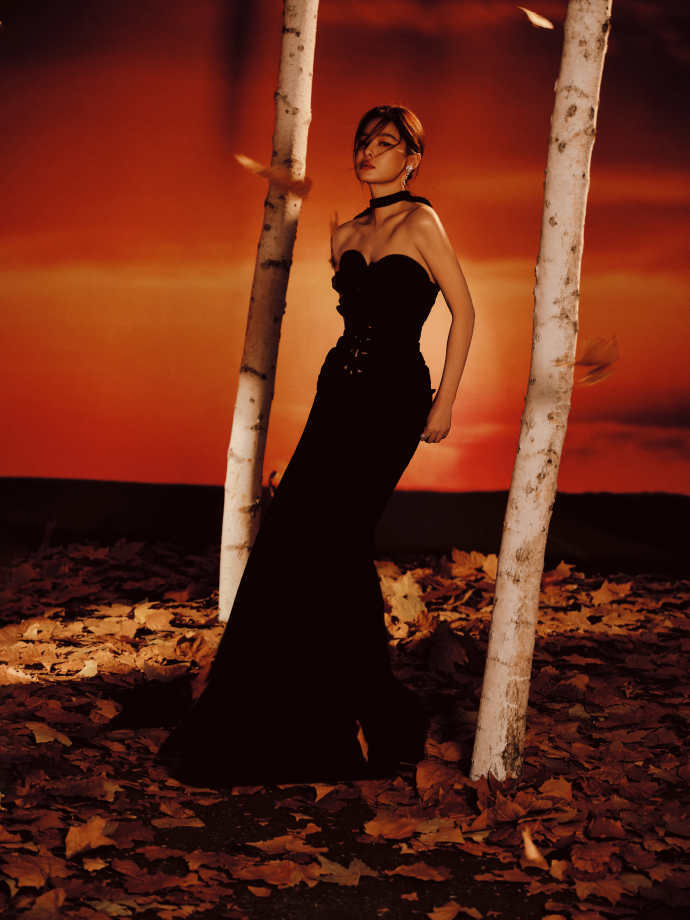 落叶从的身边辛芷蕾飘下。